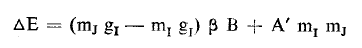 والشكل (1) يعطي مثال عن إحدى الحالات حيث الخطوط المنقطة تعطي تصحيح الطاقة السابق إذا أهملنا mIgI أمام mJgJ فإننا نحصل على نفس مخطط الطاقة لذرة في حقل ضعيف وبدون سبين نووي. لكن يجب أن لاننسى أن كل خط في هذه الخطوط المنقطة تمثل بالحقيقة (1 + 2I) خط متجاورة ومميزة مطابقة لمختلف قيم mI لنطبق الان الإضطراب :