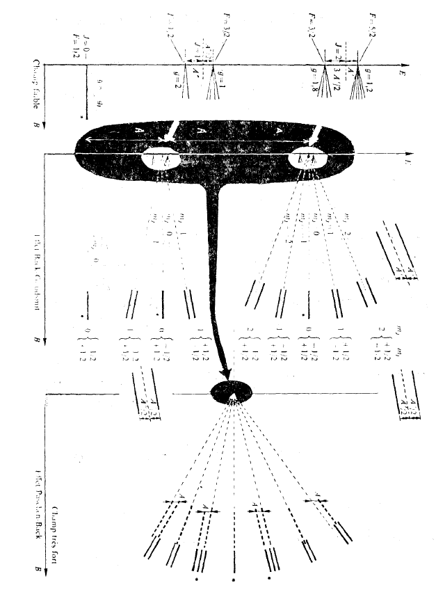 إن الدراسة التجريبية هي ذات فائدة صغيرة جداً والشكل (1) يعطي مخطط الطاقة كمياً حيث الخطوط المنقطة تمثل مستويات الاذاقة في غياب الحقل المغناطيسي والخطوط المستمرة تعطي مستويات الطاقة مع الأخذ بعين الإعتبار الحد T3.