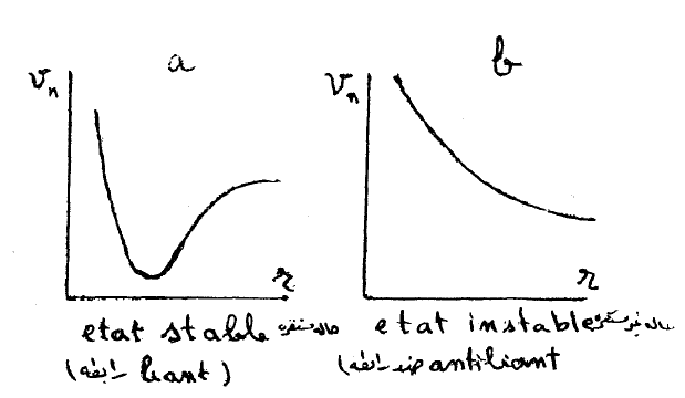 والهدف من هذه الفقرة تحديد أي من الحالات الإلكترونية مستقرة وأي منها غير مستقر. والاستقرار يعني أن لمنحني الكمون نهاية صغرى كما في الشكل (2) وأن هذا الاستقرار مرتبط بالروابط ( مشركة - شاردية — فاندرفالس).