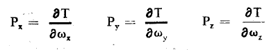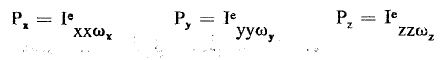 حيث ri وvi شعاع الوضع والسرعة للجزيء i بالنسبة لثلاثية XYZ ومركبات العزم الزاوي هي: