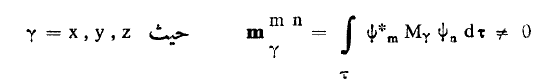حتى يكون الإنتقال مسموح (في حالة الإصدار أو الإمتصاص) وذلك بين حالتين أهتزازيتين m و n يجب أن يكون واحدة على الأقل من المركبات الثلاث لعزم الإنتقال لايساوي الصفر أي :
