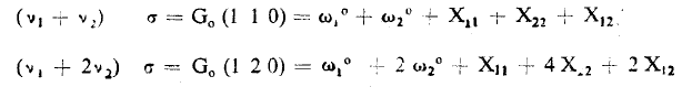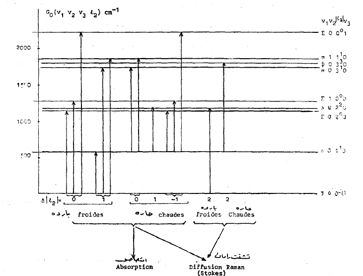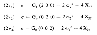 كل واحدة من السويتين معرفة بمتتالية قيم الاعداد الكمية lt, vs المرافقة للاهتزاز المضاعف التوالد. حيث v'l للسوية العليا و "٧ للسوية الدنيا العدد الموجي يعطى بالعلاقة :