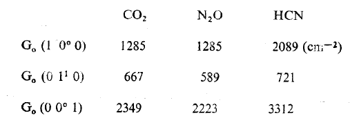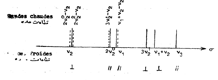 يشكل طيف الامتصاص من مجموعة القطاعات الباردة والحارة ويقع ضمن الاشعة تحت الحمراء وكمثال نأخذ حالة الجزيئات ثلاثية الذرة الخطية الغير متناظرة والشكل (1) يعطي طيف N2O حيث نلاحظ القطاعات الباردة والحارة. وهذا الشكل يسمح لنا بفهم لماذا جانب كل قطاع بارد موازي (∑ ←∑) نلاحظ قطاع حار (π ← π) وإلى جانب كل قطاع بارد متعامد (∑ ←π) نلاحظ قطاعين حارين (Δ←π و π←∑) على الشكل (1) مثلنا ( بخط منقط عامودي ) القطاعات الحارة.
