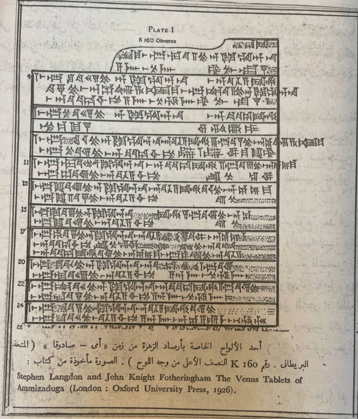 شكل (1): يوضح لوح بابلي من زمن الملك امي - صادوقا، وكانت حضارة البابليين أول حضارة معروفة لامتلاك النظرية الوظيفية للكواكب functional theory of the planets القرن السابع ق.م ..