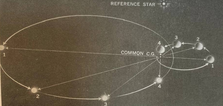 تخبرنا الميكانيكا السماوية بأن ذلك ينطبق ذاته على النجوم، فالنجم الذي هو أخف بثلاث مرات من النجم المرافق له، فإن النجم الذي يطوف حول مركز الجذب المشترك بينهما يكون بمدار مقداره ثلاث مرات أكبر من النجم المرافق له، وإذا استطعنا تعيين موضع المركز الكتلي (يمثل لنا بالمطابقة مركز عتلة الميزان) مع الإشعاع الضوئي فسوف لن يكون هناك إشكال في الموضوع.