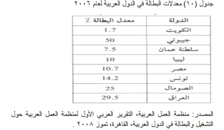 (1) منظمة العمل العربية، التقرير العربي الأول لمنظمة العمل العربية حول التشغيل والبطالة في الدول العربية، القاهرة، تموز 2008، ص63-64.
