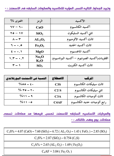 - ومن هنا يعتبر الاسمنت المحتوى على نسب عاليه من ثالث سيليكات الكالسيوم اكثر استخداما في العناصر المطلوب لها مقاومه مبكره حيث يماه بسرعه اكثر من مركب ثانی سیلیکات