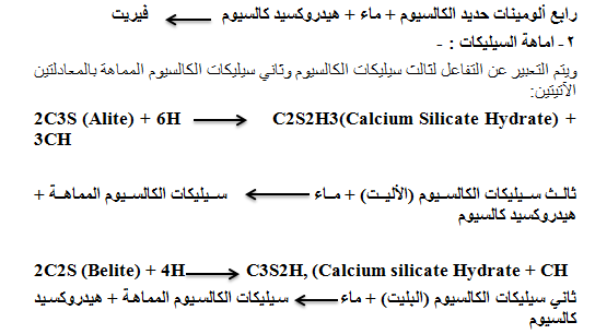 ويلاحظ في هذا التفاعل أن إماهة ثالث سيليكات الكالسيوم C,S ينتج عنه: