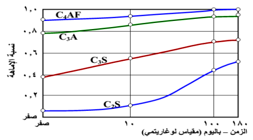2- يبين الشكل التالى سرعة عملية الاماهه للمركبات الاربعه الاساسيه للاسمنت: