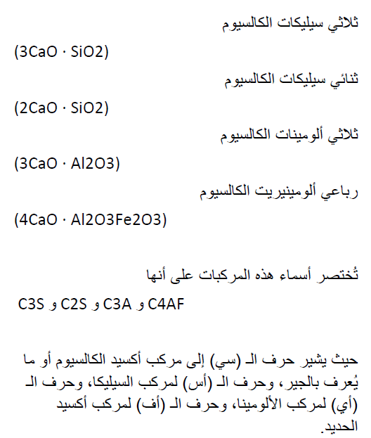 يتكون الأسمنت البورتلاندي من أربعة مركبات رئيسية هي: