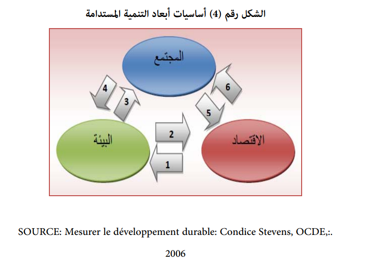 كما تعرفها منظمة التعاون والتنمية الأوربية OCDE أن مفهوم التنمية المستدامة تشمل ثلاث أبعاد الاقتصادي والاجتماعي والبيئي متحدة كما نلاحظه بالشكل رقم (4) بحيث أن: