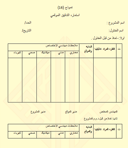 نموذج رقم ( 16 ) – استمارة التدقيق الموقعي