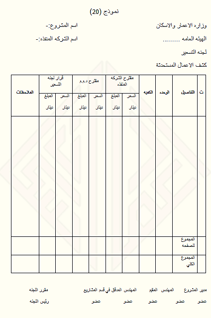 نموذج رقم ( 20 ) – كشف الاعمال المستحدثة