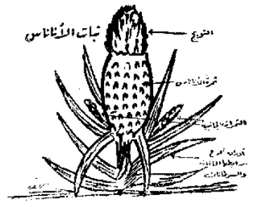 النورة: توصف نورة الاناناس بأنها نورة سنبلية وتتكون من محور غض متشحم يعلو الحامل الزهري وبطول 20 سم، تتوضع الازهار على سطحه في ترتيب حلزوني يماثل نظام خروج الاوراق على الساق.