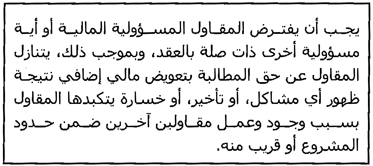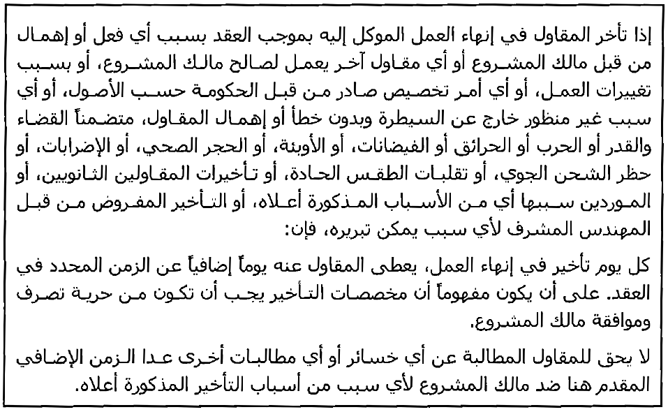 مثال (1) جزء من عقد يحتوي على البند " لا تعويض مالي عن التأخير".