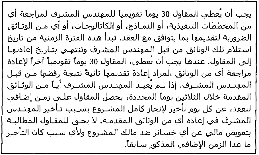 كما يغطي هذا البند بشكل محدد مراجعة المخططات التنفيذية وإعادتها الى المقاول كما في المثال (4)
