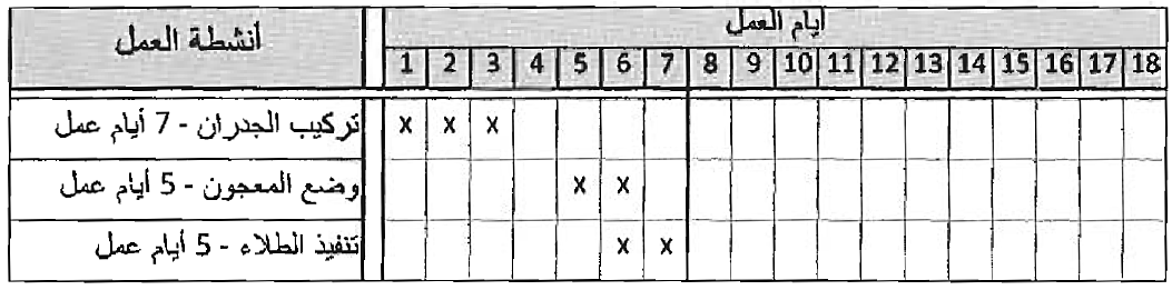 شكل (2) الجدولة الزمنية التخطيطية لمشروع إنشاء صالة.