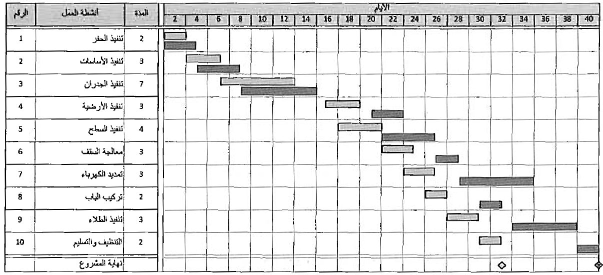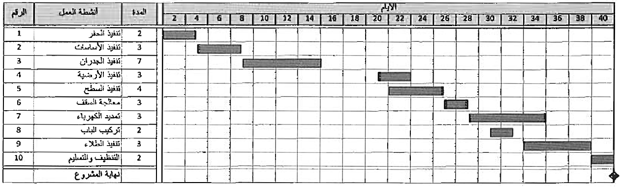 يمثل المشروع باستخدام المخطط الشريطي ، حيث يظهر البرنامج التخطيطي في الشكل (2).