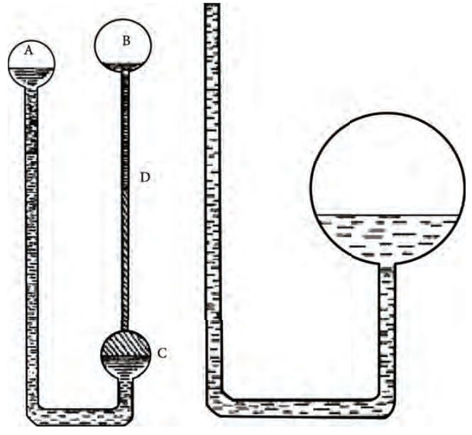 (إلى اليمين) مكشاف أمونتون الحراري المغلق، إلى اليسار مكشاف أمونتون ضغط الهواء الحراري. مصدر الصورتين: