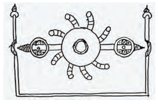 منظومة من ثلاثة مسننات معشقة مع بعضها بعضًا، حيث تقوم السلاسل المعلقة بالمسنن الأفقي اليميني بالحركة دافعة المسنن العمودي في الوسط للحركة، والذي يُحرك بدوره المسنَّن الأفقي الثاني الموجود على اليسار فيُحرِّك السلسلة المعلقة فيه، والتي تنزل لحد معيَّن، ثم تقوم بحركة رجعية أو عكسية تجعل المسنن الثاني يُحرك المسنن في الوسط، والذي في الوسط يُحرّك المسنن الأول، وهكذا تستمر الحركة بلا نهاية.