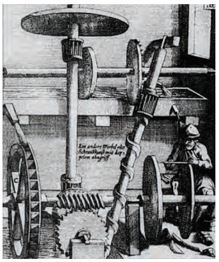 أصدر جورج أندرياس بوكلير A. Böckler .G (نحو 1617-1687م) في ألمانيا عام 1661م كتاب «مسرح الآلات الجديدة»، 59 حيثُ وصَف ورسم فيه بدقة مجموعة من الطواحين التي تعمل بنفسها وتعتمد على لولب أرخميدس، وأكد أنها فكرته هو. لكن مواطنه الأسقف التشيستيري جون ولكنز Wilkins .J (1672-1614م) حلَّل عمل مثل هذه الطاحونة بشكل موسع، وأثبت أنها لن تعمل بنفسها، بعد أن صنع نموذجًا أوليًا لها. 60