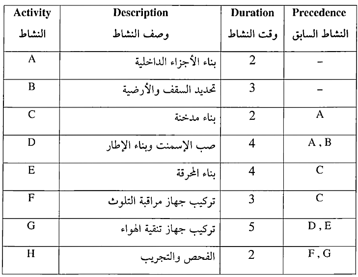 البرمجة الشبكة باستخدام أسلوب المسار الحرج (CPM) Critical Path Method