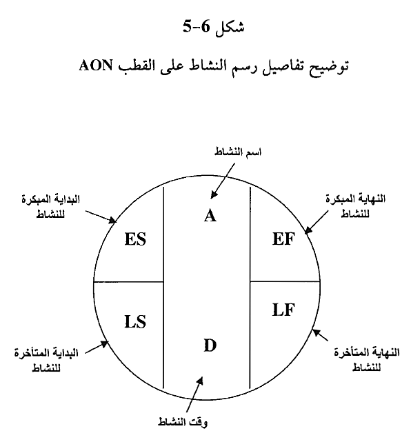 - رسم شبكة المشروع باستخدام طريقة النشاط على القطب AON.