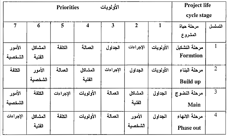 أولويات الصراع عبر مراحل حياة المشروع