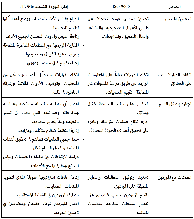 ج. المقارنة بين إدارة الجودة الشاملة ISO9000 يمكن توضيح أهم الفروق بين نظام إدارة الجودة و9000 ISO من خلال الجدول التالي رقم (2)