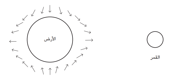 حسب نظرية نيوتن فإن قوى المد التي تظهر على الأرض ناجمة عن القمر. ويظهر هذا النموذج عندما نطرح متوسط قوة الجاذبية على سطح الأرض من الاختلافات الناجمة عن خطوط الحقل المنتشرة. وهي عبارة عن قوى من تدفع بعيدًا عن مركز الأرض إلى مسار يصل القمر بالأرض. وهناك قوى من تدفع باتجاه مركز الأرض بشكل عمودي على محور القمر-الأرض. (مصدر الصورة والتعليق هوث، جون إدوارد الفن الضائع ثقافات الملاحة ومهارات اهتداء السبيل، ص 139.)