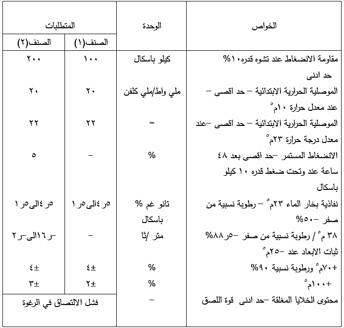 تعتمد متطلبات الموصلية الحرارية الابتدائية الظاهرية في الجدول (9-16) على النماذج التي تم رشها حالاً ، تستخدم نتائج الفحص لاغراض المواصفة ولاتعكس نوع الاداء الفعلي .
