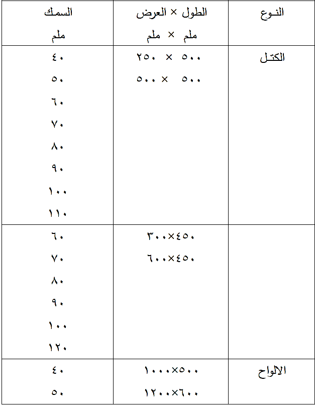 تكون الكتل مستطيلة الشكل وبالابعاد المبينة في جدول رقم (9-5).