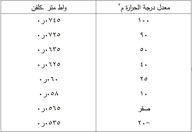 * عند الحاجة الى معدل درجة حرارة غير وارد في الجدول اعلاه يمكن مراجعة المواصفة القياسية العراقية رقم (1475) .