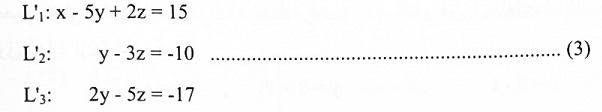 1- ضرب المعادلة L1 في -3 ونضيف حاصل ضرب للمعادلة L2.