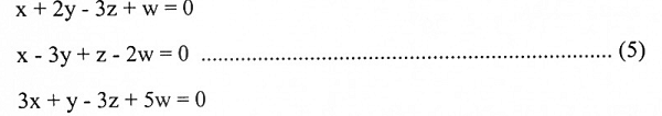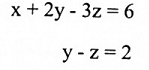 يتضح من المعادلتين أعلاه أننا حصلنا على معادلتين خطيتين بثلاث متغيرات، وللحصول على الحل نفرض أن z = t ثم نجد قيم y , x بالتعويض في المعادلة الثانية والأولى. عليه فإن الحل يكون: