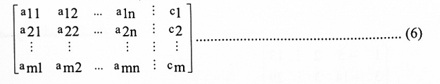 إذ أن aij هي أعداد حقيقية تمثل معاملات المتغيرات و ci تمثل الثوابت في الطرف الأيمن من النظام (1). تسمى الخطوط الأفقية صفوفاً، أما الخطوط العمودية فتسمى أعمدة، ويقال للصيغة (6) ، المصفوفة الممتدة.
