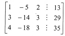نرمز لهذه العملية بالرمز L2 + -3L1، كذلك نضرب L1 في -4 ونضيفه إلى L3 (أي أن العملية هي L3 + -4L1).