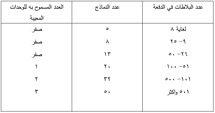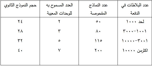 ب- يعتمد عدد الطابوق المنتخب عشوائيا من الدفعة على حجم الدفعة وكما في الجدول رقم (12-7)
