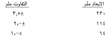 ويكون التفاوت المسموح به للابعاد اعلاه كالاتي :