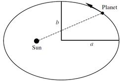 Figure 1.1 displays the geometry of a planetary ellipse. Note the dimensions a and b of the semimajor and semiminor axes, and the Sun located at one focus.