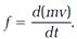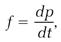 By “change of motion” Newton means the instantaneous rate of change in the momentum, equivalent to the time derivative dp/dt. In the modern convention, force is defined as this derivative, and the equation for calculating a force f is simply