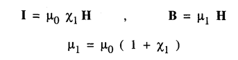 حيث ꭓ هي القابلية المغناطيسية وهي بلا وحدات وإن أطلق عليها أحيانا القابلية المغناطيسية الحجمية إذا ارتبطت I بوحدة الحجوم وقد تكون ꭓ موجبة الإشارة كما في حالة المواد البارامغناطيسية أو سالبة في حالة المواد الديامغناطيسية. كما قد يطلق على القيم العددية للقابلية أسماء مختلفة مثل: القابلية النوعية، أو قابلية وحدة الكتل، أو القابلية الذرية أو الجزيئية (A ꭓ/ρ) - حيث ρ هي كثافة المادة، A الكتلة الذرية أو الجزيئية (الوزن الذرى أو الجزيئي). وإذا دمجنا المعادلتين (17-2) و(18-2) فإن:
