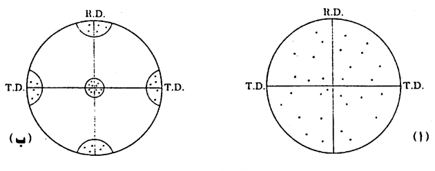 نفترض أن عندنا شريحة من معدن ينتمي للنظام المكعبي ونفترض أن الشريحة من حبيبات كبيرة الحجم عددها عشرة فقط، فإذا أردنا تمثيل الاتجاهات لهذه الحبيبات جملة برسم أماكن الأقطاب [0 0 1] لها في مسقط ستير وجرافي stereographic projection (انظر تذييل 9) بحيث يكون مستوى المسقط موازي لسطح الشريحة، وحيث إن كل حبيبة لها ثلاثة أقطاب [0 0 1] فإن ذلك ينتج 30 = 10 × 3 قطب مرسوم على المسقط فإذا كانت الحبيبات لها اتجاهات عشوائية كلية فإن هذه الأقطاب تكون موزعة بطريقة متجانسة في المسقط كما هو موضح بالشكل (11-13 أ) ولكن إذا كان يوجد اتجاه مفضل للحبيبات فإن الأقطاب تميل لأن تكون متجمعة مع بعضها البعض في مساحات معينة في المستوى تاركة مساحات أخرى بدون أقطاب.