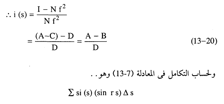 والتكامل الثاني في هذه المعادلة يساوي صفرا إلا إذا كانت s صغيرة جدا حيث تكون شدة الأشعة المشتتة لا يمكن فصلها عن الشعاع الأصلي ولا يمكن مشاهدتها، وعلى هذا فإذا اقتصر الاهتمام على ما نحصل عليه عمليا فإن المعادلة (5-13) تصبح: