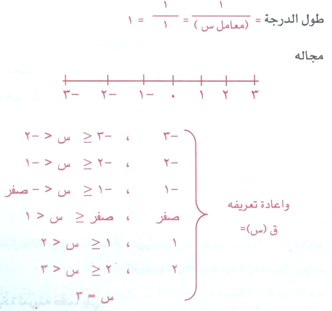 أنه اقتران جبري يدعوه بعض الرياضيين الاقتران الدرجي وبعضهم الآخر الاقتران السلمي كون منحاه شبيه بالسلم والدرج , قاعدته ق(س) = [س] ولتمثيل بيانه على المستوى الديكارتي لابد من أعادة تعريفه هكذا