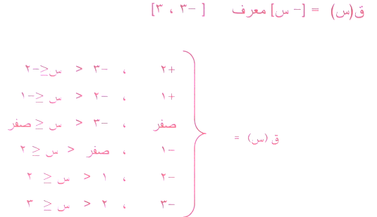 مثل منحني الاقتران ق(س) = [س] على العرف الفترة [[-3,3