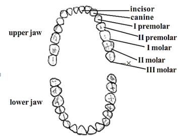 I 2/2: c 1/1 : pm 2/2 m 3/3 X 2 or