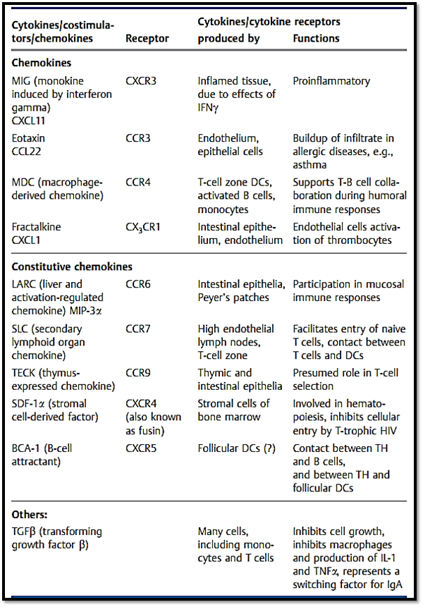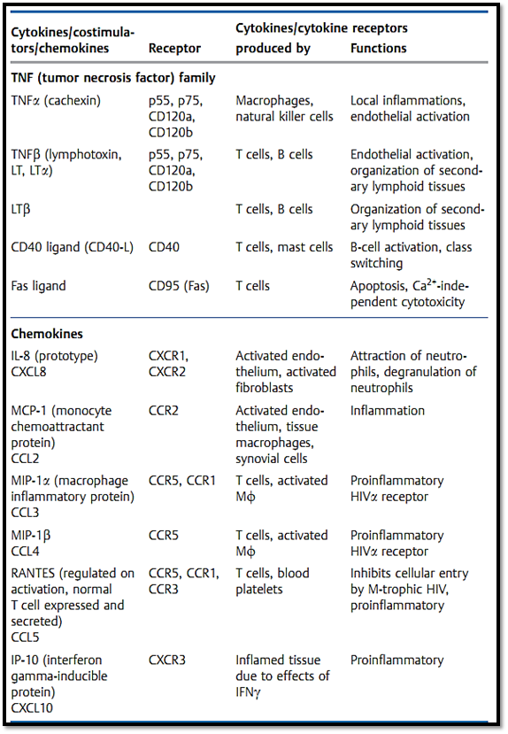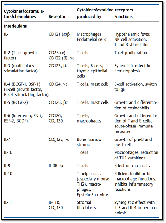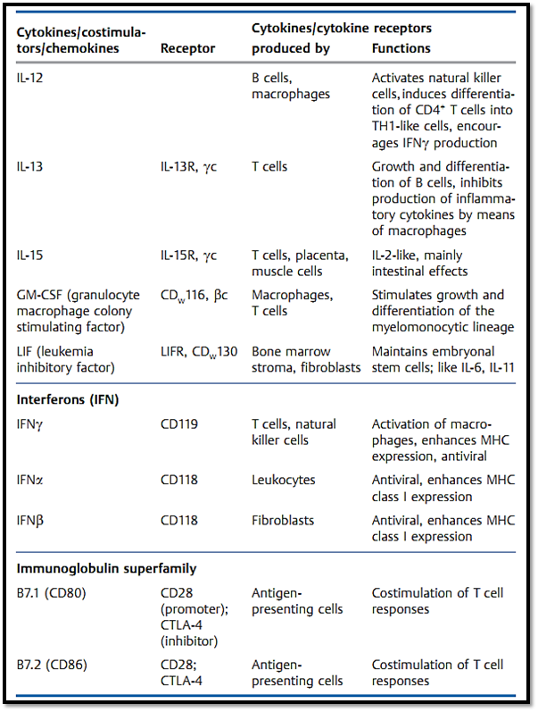 Table 1 The Most Important Immunological Cytokines and Costimulators plus Their Receptors and Functions