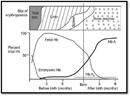 Fig. 2: Hemoglobin synthesis during prenatal and postnatal period