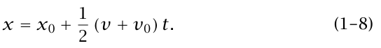 نرغب أحيانًا في معرفة السرعة كدالة للموضع x بدلا من أن تكون دالة للزمن t. بحل المعادلة (7–1) لـ t، أي a/ (v–v0) = t والتعويض في المعادلة (8–1) نحصل على: